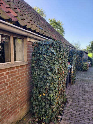 3.4.Omstreeks 12 juli 2020 hebben [gedaagde 1] c.s. op hun perceel op beperkte afstand van de drie ramen in de woonboerderij houten schuttingdelen met daartegen gaas en hedera geplaatst.
