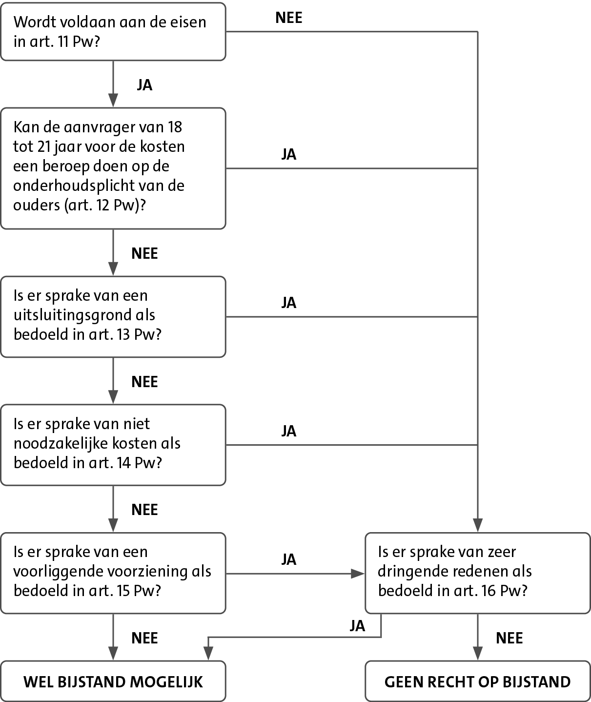 De toepassing van art. 11-16 Pw kan schematisch als volgt worden weergegeven: